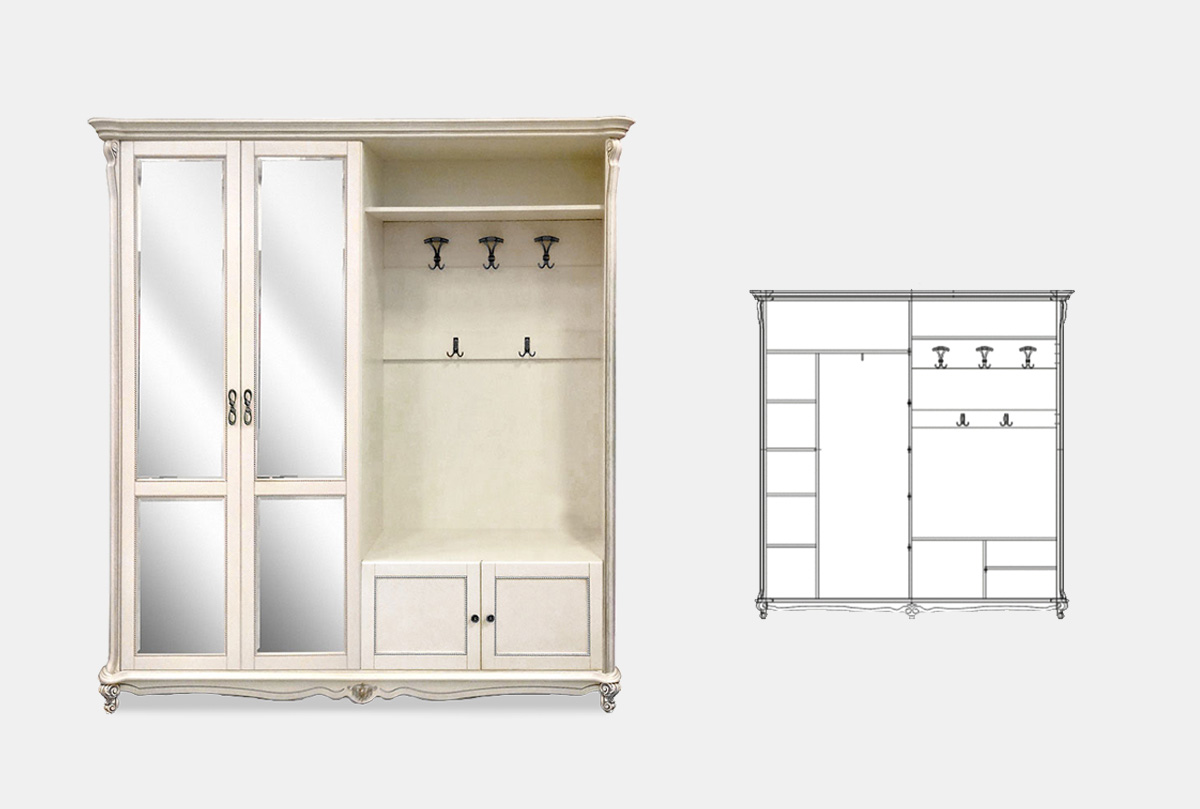 ✅ Правая/левая сторона определяется по расположению крючков. Если Вам необходимо, чтобы крючки были с правой стороны, вам нужно выбирать правый шкаф.