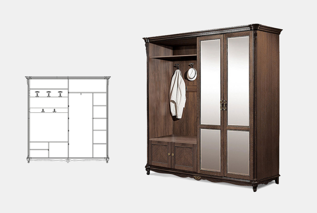 ✅ Правая/левая сторона определяется по расположению крючков. Если Вам необходимо, чтобы крючки были с правой стороны, вам нужно выбирать правый шкаф.