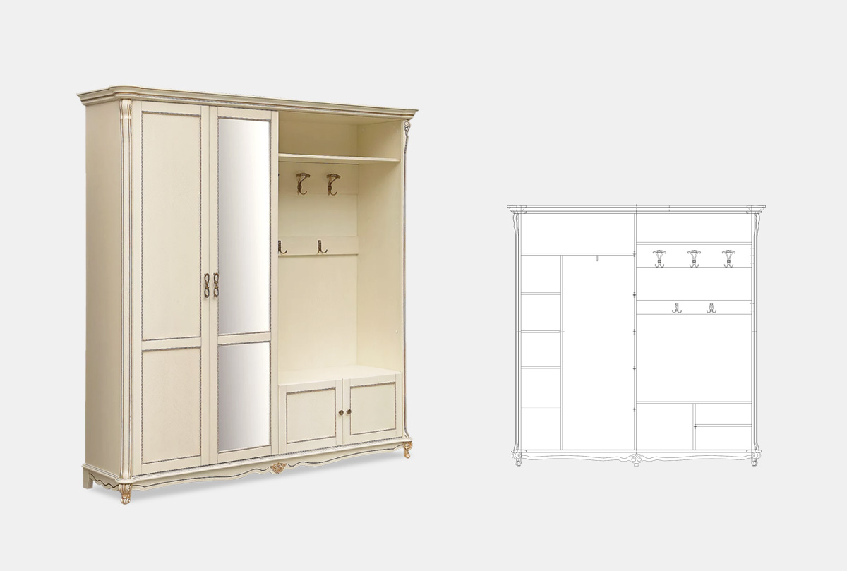 ✅ Правая/левая сторона определяется по расположению крючков. Если Вам необходимо, чтобы крючки были с правой стороны, вам нужно выбирать правый шкаф.
