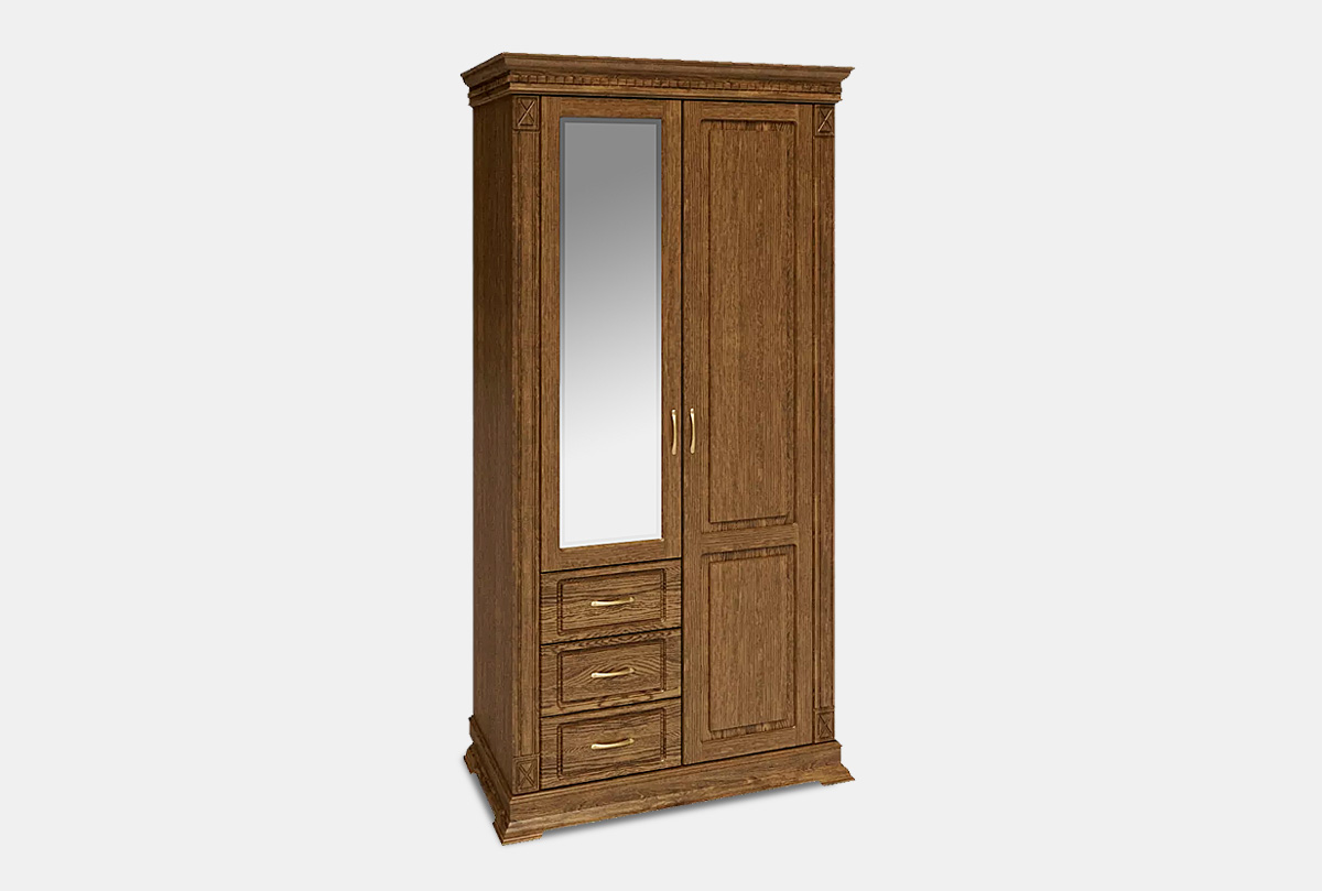 Шкаф комбинированный Верди Люкс 12з с зеркалом из массива дуба для прихожей. размеры: 1148 х 2300 х 637 мм.
