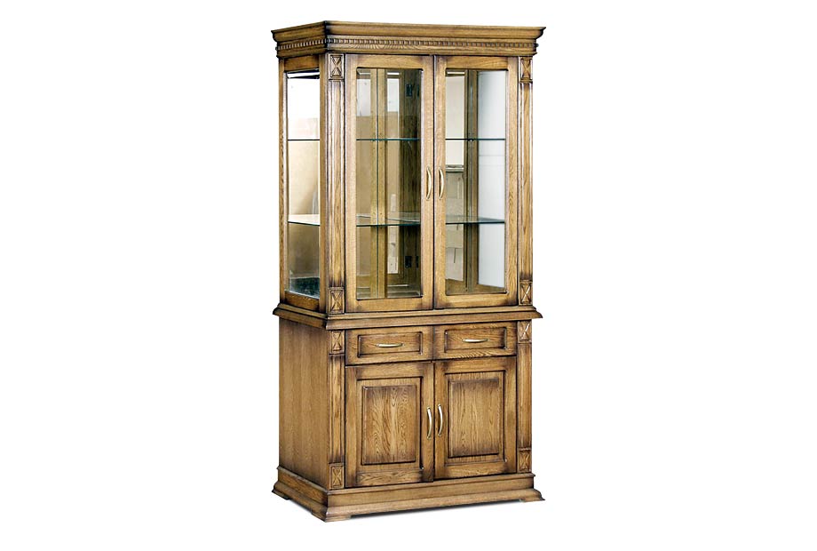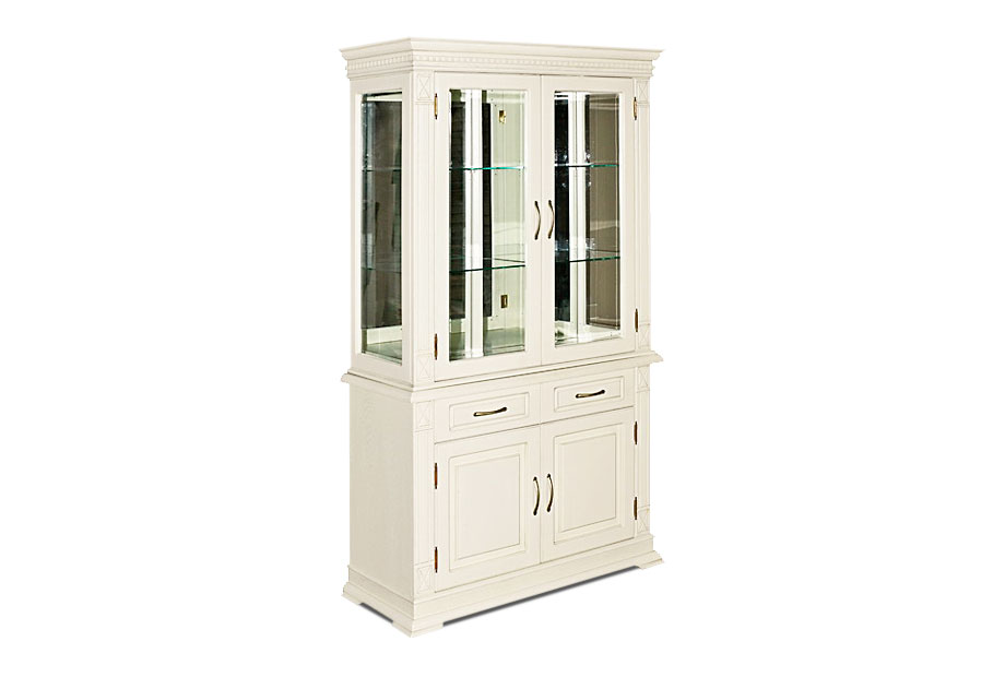 Комбинированный шкаф из коллекции «Верди Люкс» - это стильное решение для интерьера, оформленного в классическом стиле. Стеклянные фасады в сочетании с зеркальными полками и задней стенкой создадут красивую игру света. Благодаря этому, хрустальные бокалы, которые Вы можете поставить на полки, заиграют новыми красками. В выдвижных ящиках и нишах за дверцами Вы сможете спрятать личные вещи и легко поддерживать порядок в комнате. Декоративные элементы в виде резных пилястр и фигурного цоколя придают шкафу торжественности и утонченности, свойственных классике.