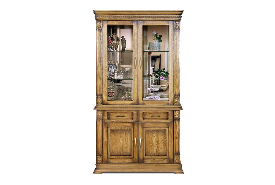 Комбинированный шкаф из коллекции «Верди Люкс» - это стильное решение для интерьера, оформленного в классическом стиле. Стеклянные фасады в сочетании с зеркальными полками и задней стенкой создадут красивую игру света. Благодаря этому, хрустальные бокалы, которые Вы можете поставить на полки, заиграют новыми красками. В выдвижных ящиках и нишах за дверцами Вы сможете спрятать личные вещи и легко поддерживать порядок в комнате. Декоративные элементы в виде резных пилястр и фигурного цоколя придают шкафу торжественности и утонченности, свойственных классике.