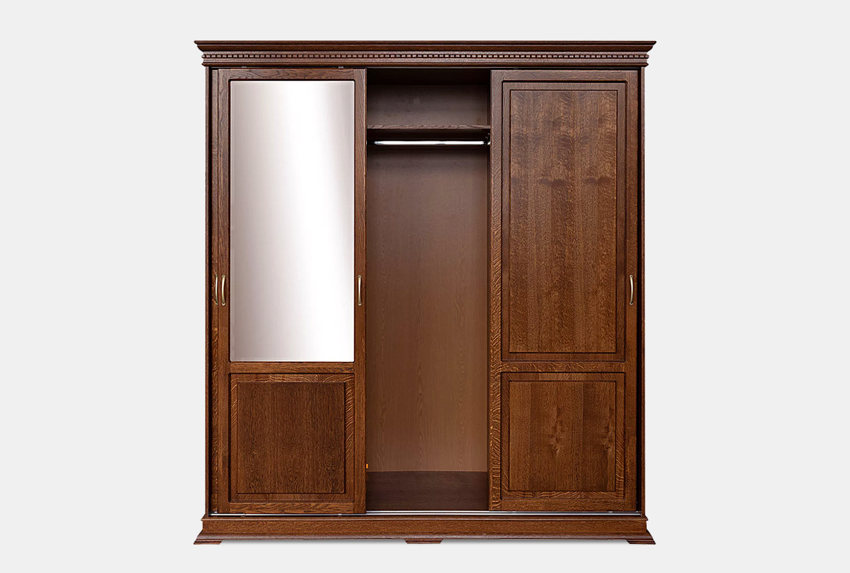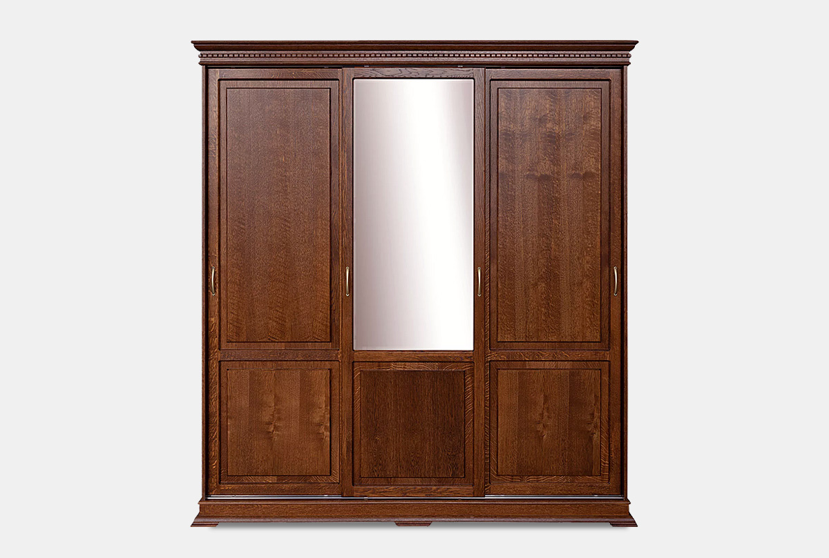 Трехдверный шкаф-купе «Верди Люкс» - это идеальный баланс красоты и эргономичности. Утонченность классики представлена в виде фигурного цоколя, резных пилястр и благородных цветов крашения, которые подчеркивают природную красоту дерева.