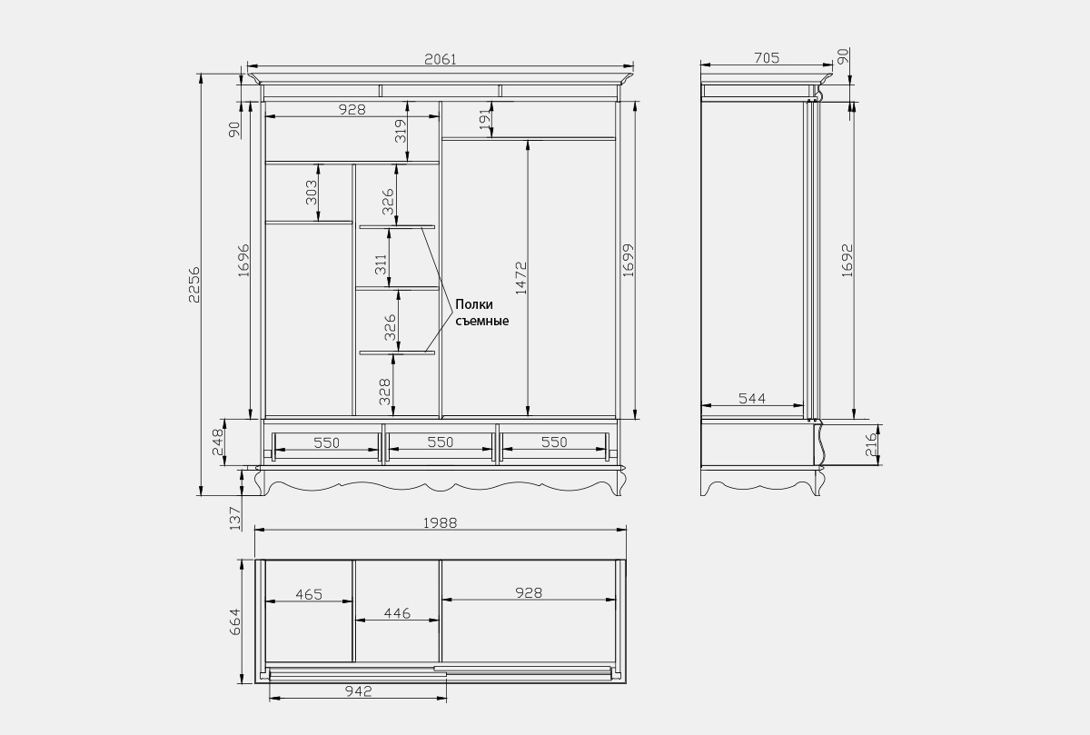 Шкаф-купе для одежды "Тэфи" 2-х дв. без зеркала, классик, (.Г000081266)