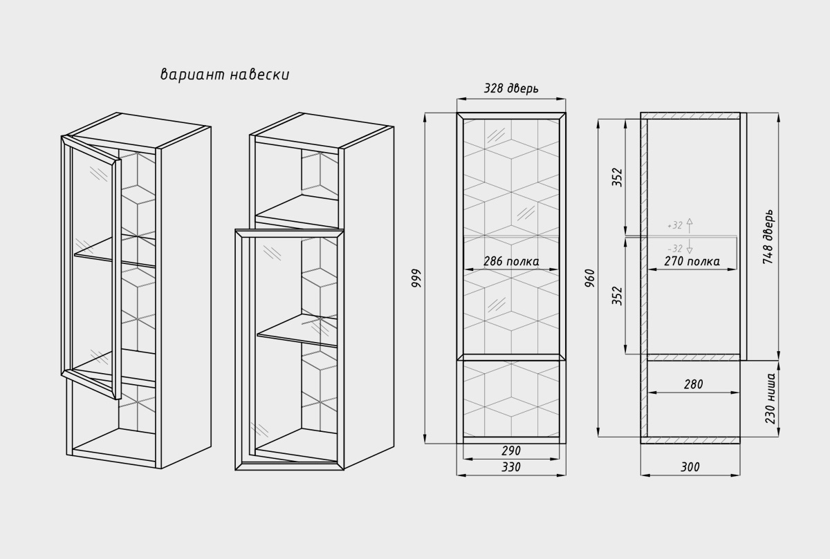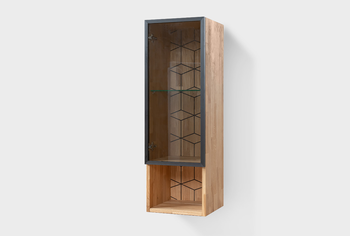 Шкаф настенный "Etna" стекло (левый), дуб натуральный, с декором, (.Г000089295)