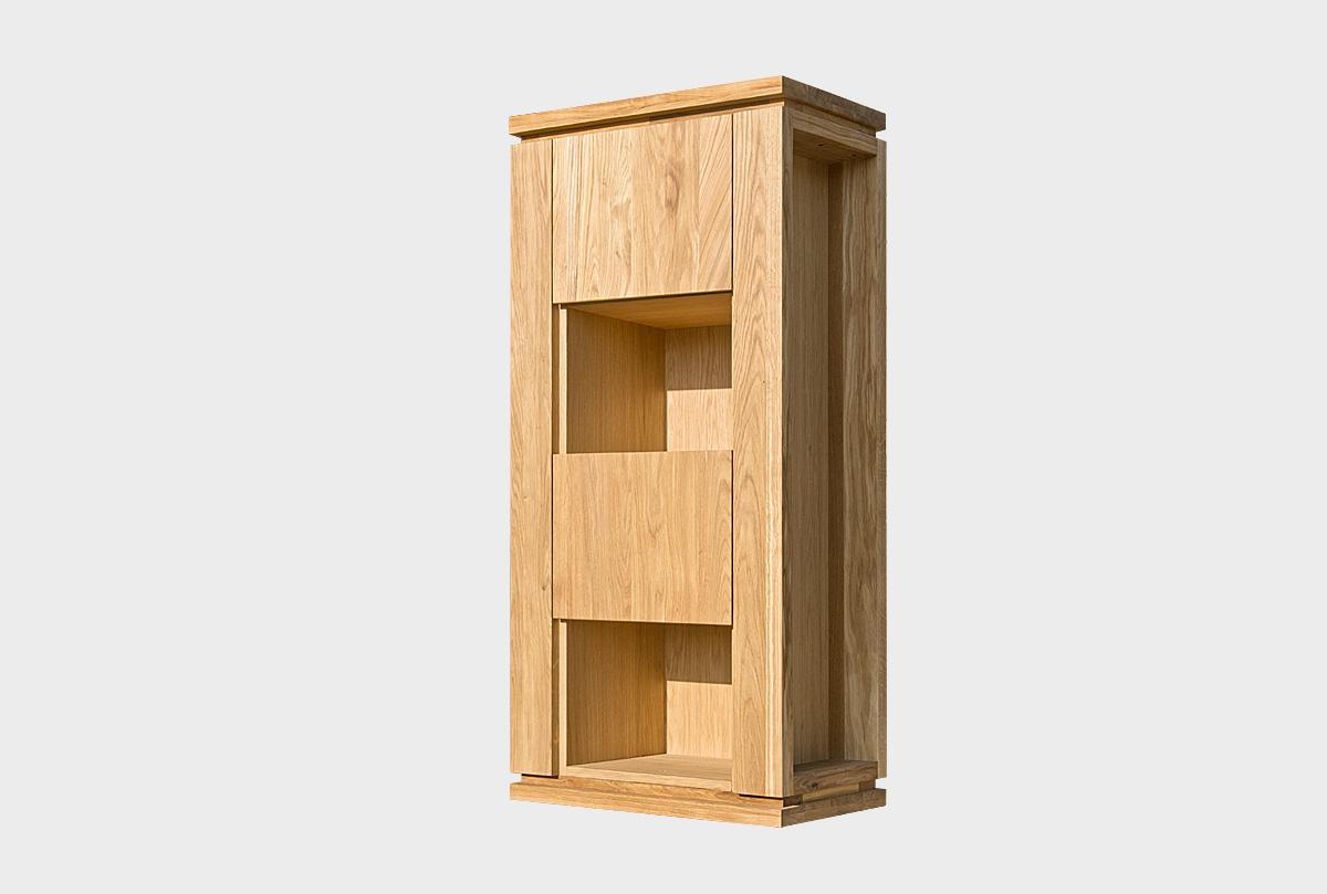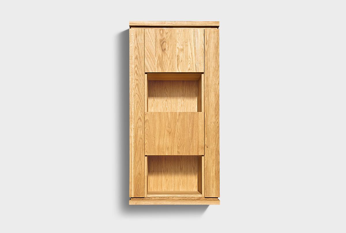 Правый вертикальный навесной шкаф «Берген» (Bergen) в цвете «бейц масло». Изделие выполнено из массива и натурального шпона дуба.