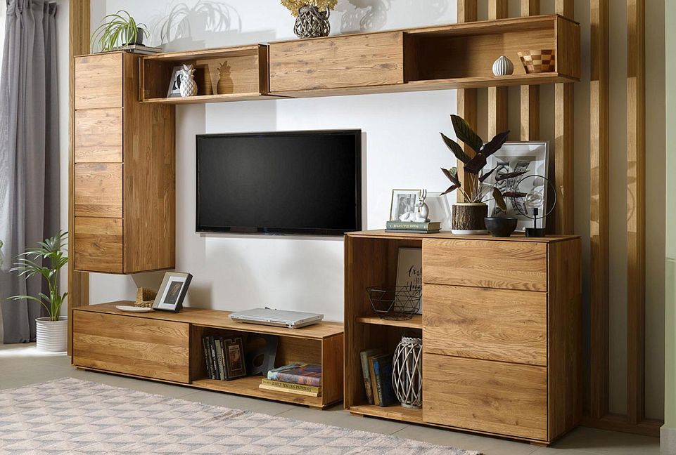 Левый однодверный навесной шкаф «Гринвуд» из дуба в цвете бейц-масло для гостиной в стиле Лофт.