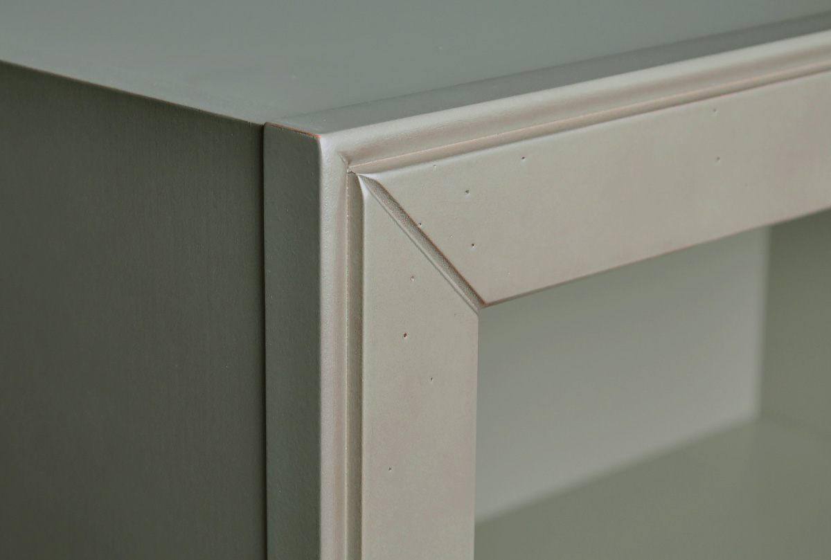 Навесной открытый шкаф «Оливия» в цвете «олива» выполнен в классическом стиле из массива и шпона ольхи.