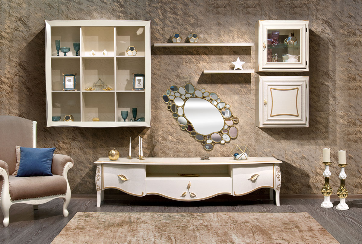 Шкаф навесной открытый "Трио", белая эмаль с золотой патиной, (.Г000027516)