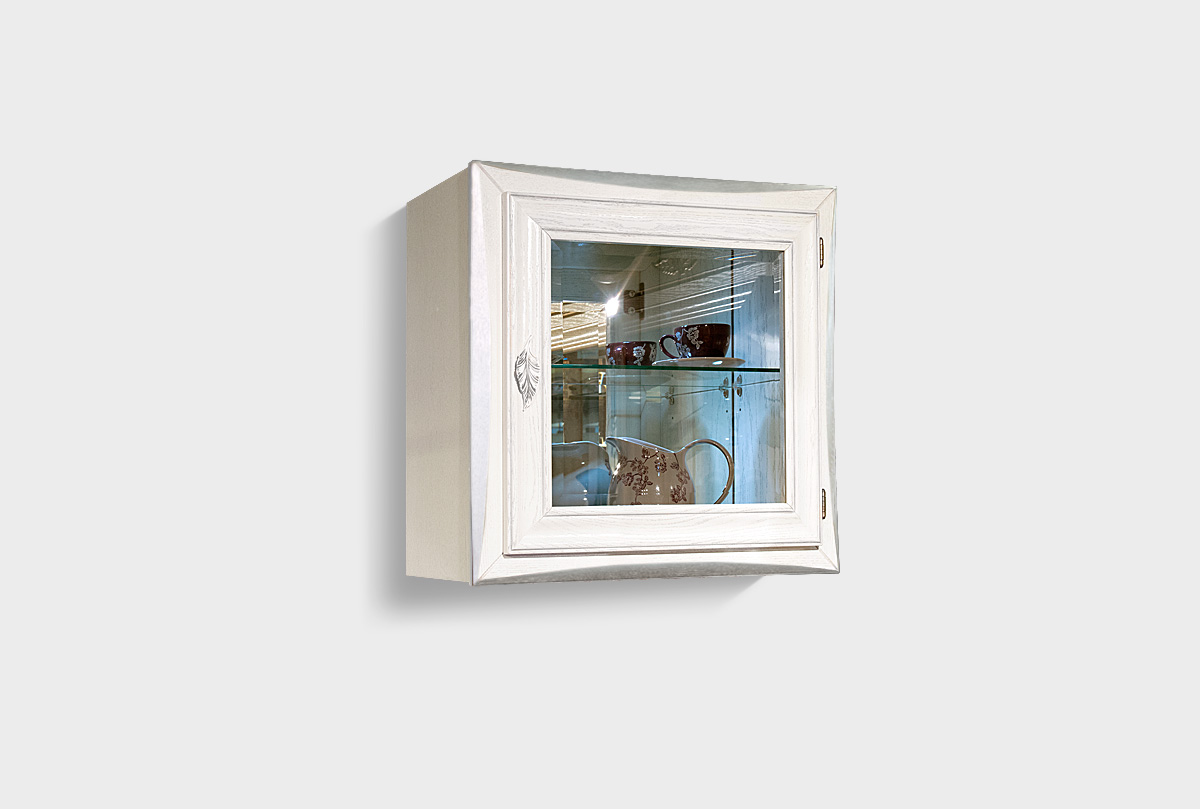 Шкаф навесной "Трио" со стеклом (правый), белая эмаль с серебряной патиной + серебро, (.Г000062087)