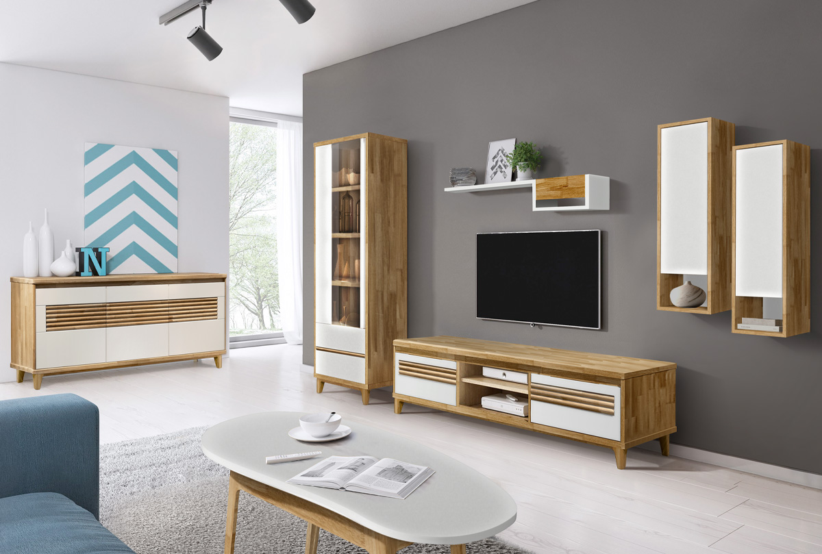 Правый навесной шкаф Wallstreet (Уолстрит) в цвете «к-бейц-масло, ф-белый» в стиле Лофт для Вашей гостиной. Шкаф изготовлен из комбинации материалов - массива дуба и эмали. Из массива дуба изготовлен корпус шкафа.