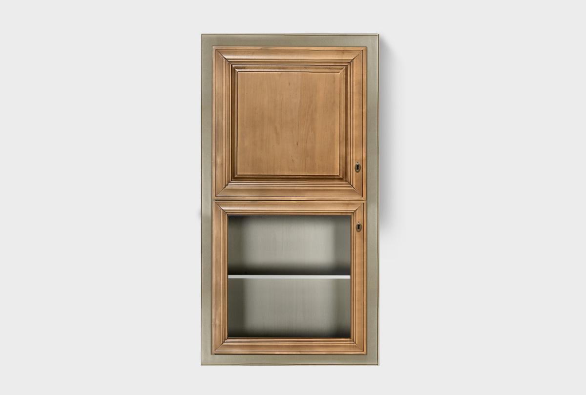 Закрытый навесной шкаф «Оливия» в цвете «олива» выполнен в классическом стиле из массива и шпона ольхи.