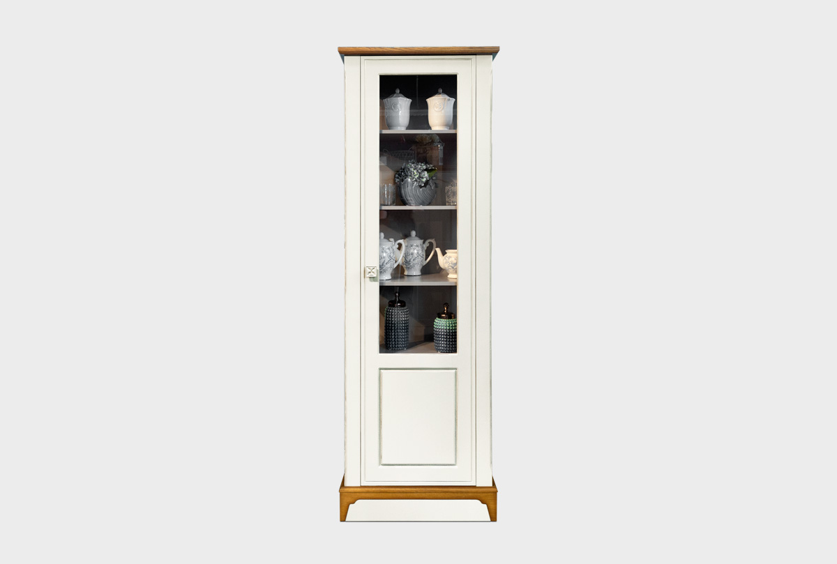 Однодверная правая витрина Brianson в цвете "жемчуг+дуб" станет идеальным дополнением к гостиной. Несмотря на кажущуюся массивность, благодаря своей небольшой ширине шкаф «Бриансон» не займет много места в Вашей комнате и станет ее украшением и изюминкой.