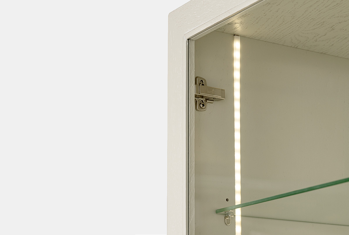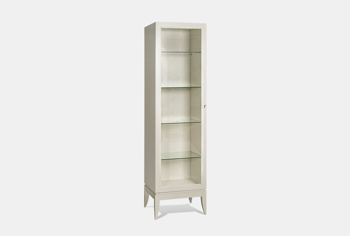 Шкаф с витриной 1-но дв. "Costa" левый (подсветка); айвори с белой патиной