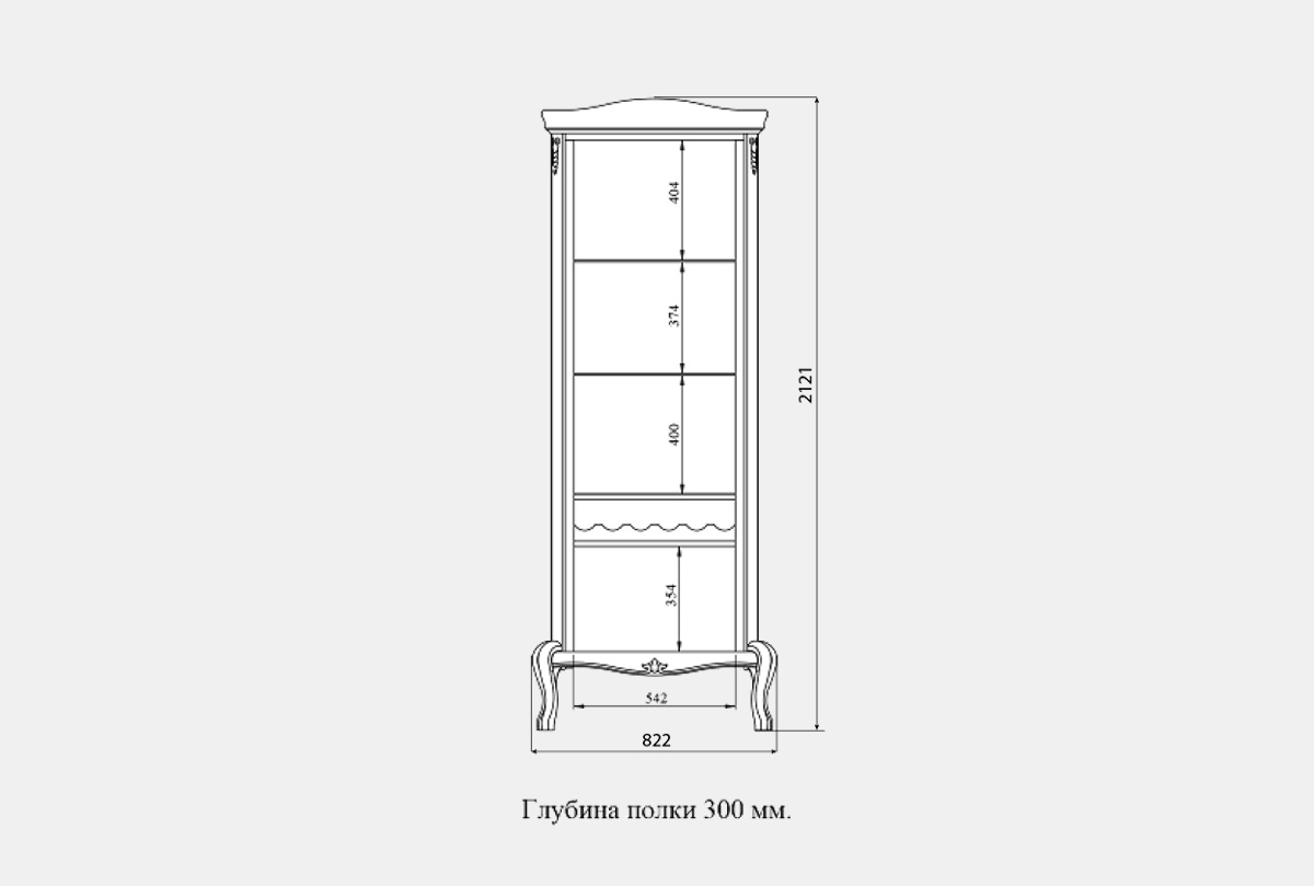Шкаф с витриной 1-но дв. "Fleuron" (правый), классик, (.Г000081665)