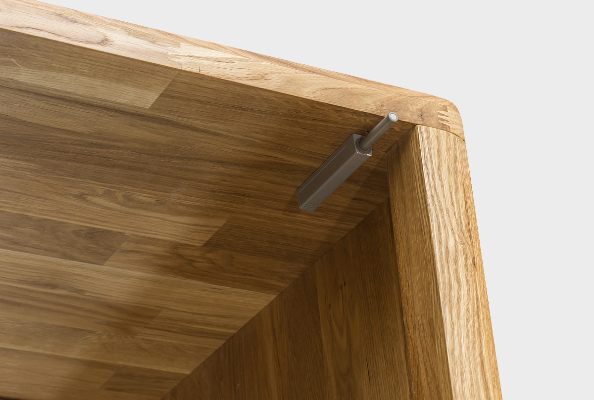 ✅ Цельные скругленные боковины изделия из благородного массива дуба, которые придают формам мягкость и утонченность.