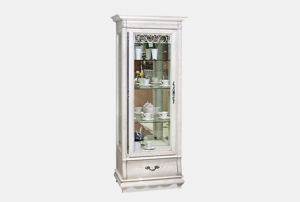 Шкаф с витриной 1-но дв. "Тэфи" (левый), белая эмаль с тёмной патиной, (Г9683)