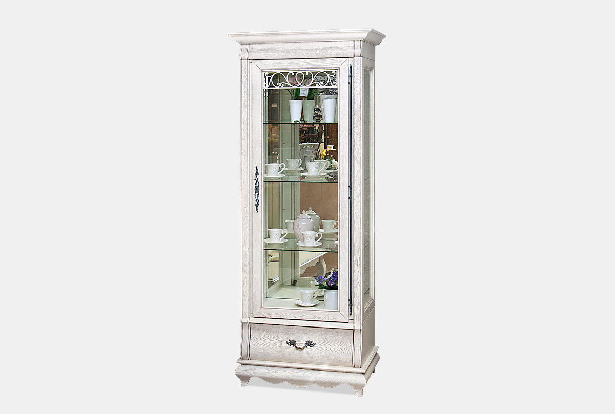 Шкаф с витриной 1-но дв. "Тэфи" (правый), белая эмаль с тёмной патиной, (Г9682)