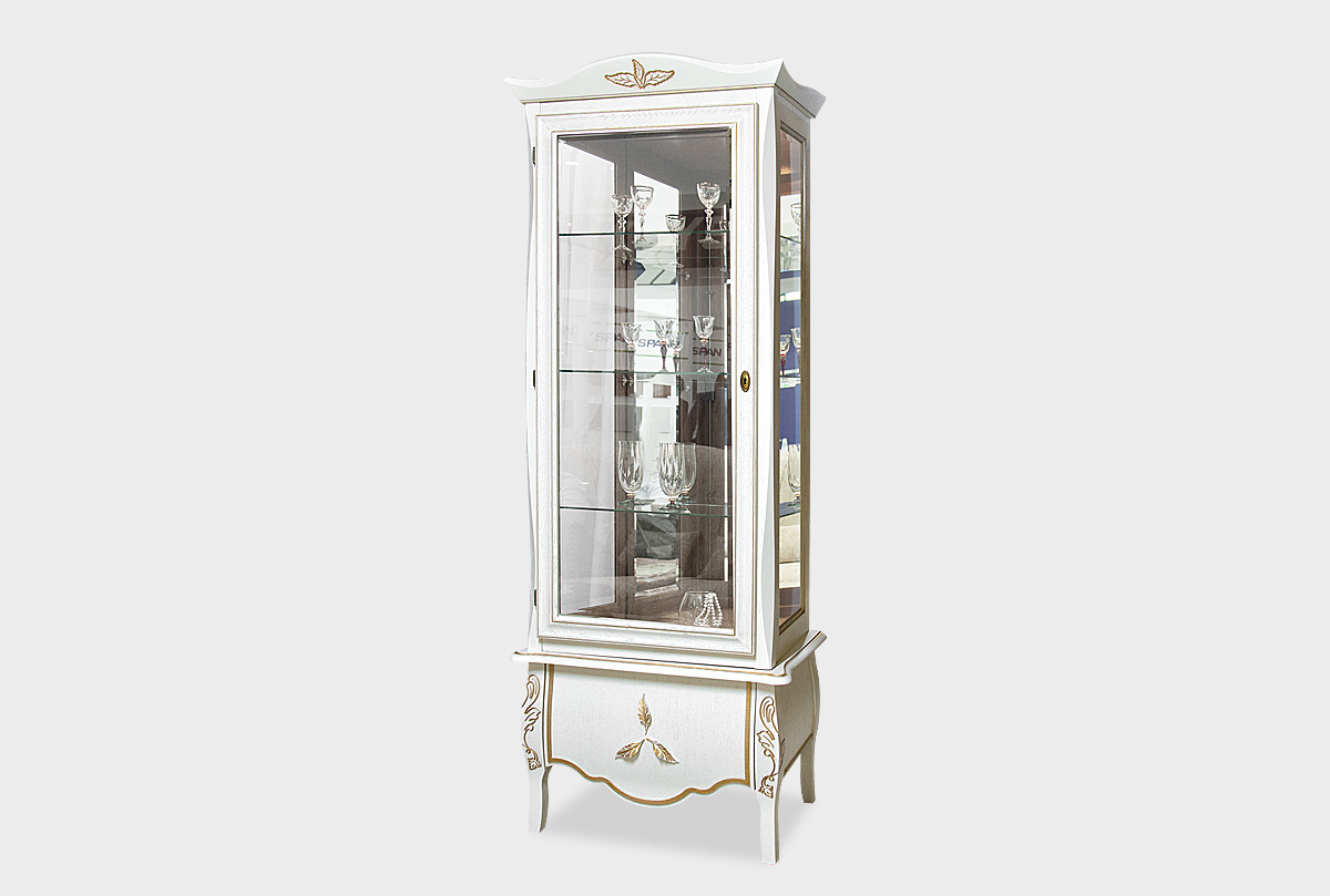 Шкаф с витриной 1-но дв. "Трио" (левый), белая эмаль с золотой патиной, (.Г000023502)