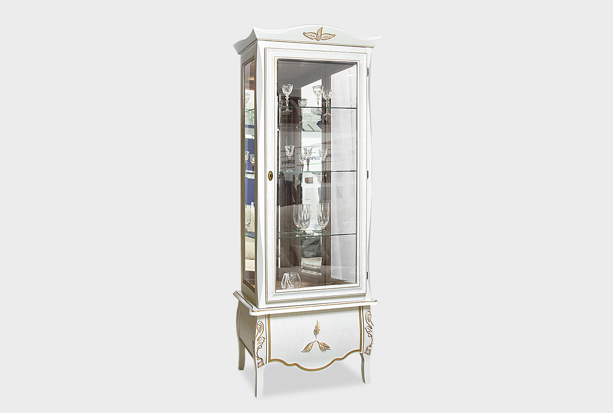 Шкаф с витриной 1-но дв. "Трио" (правый), белая эмаль с золотой патиной, (.Г000023501)