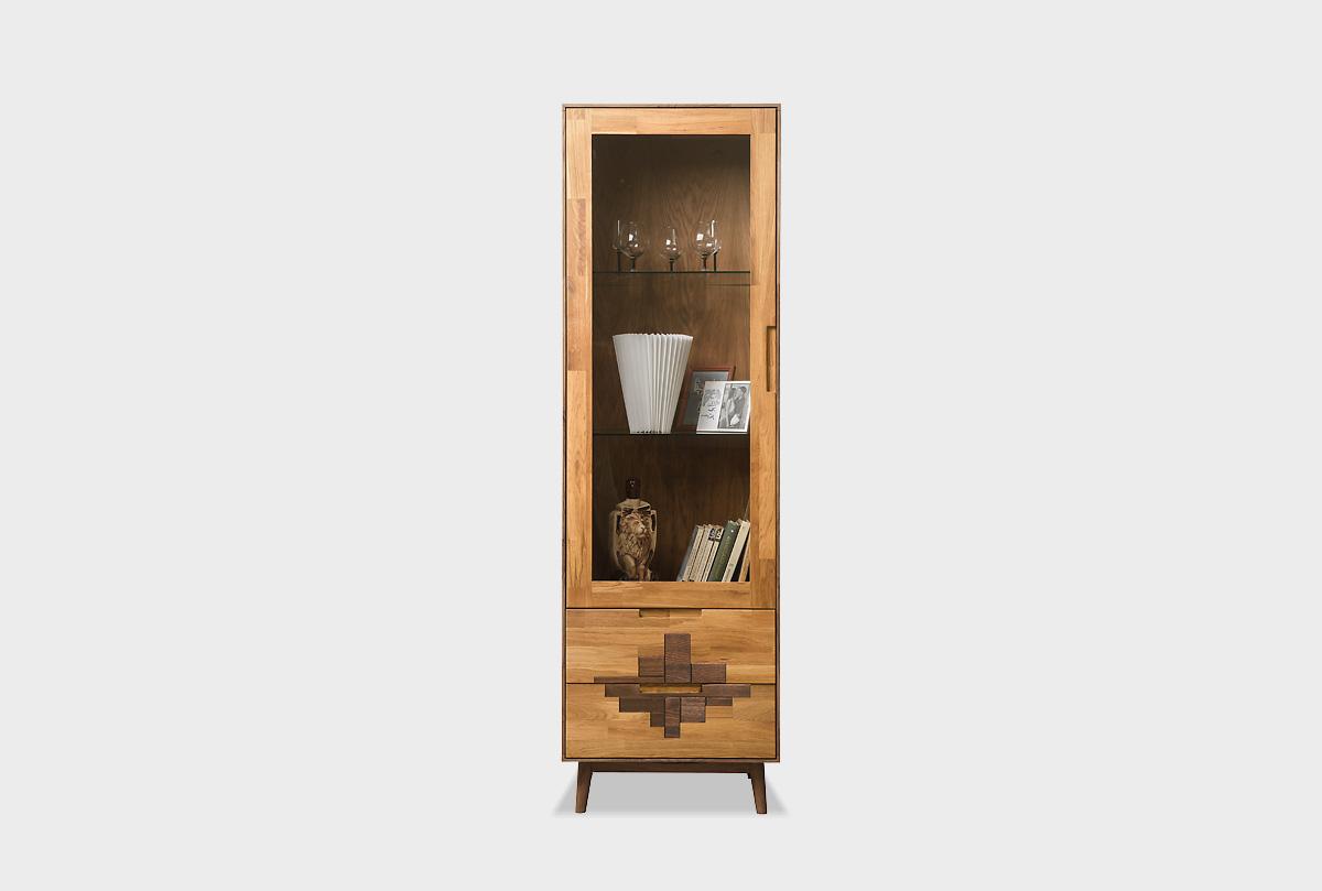 Лквый однодверный шкаф с витриной Irving Design (Ирвинг Дизайн) в цвете «графит, бейц-масло» из массива дуба в стиле Лофт, 600 х 1950 х 450 мм.