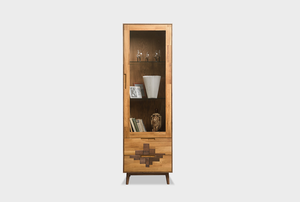 Шкаф с витриной 1-но дверный "Irving Design" (правый), графит + бейц-масло, 2 ящика, (.Г000060540)