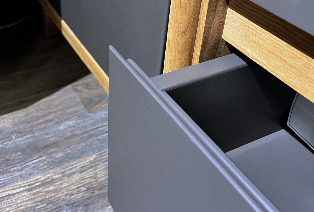 ✅ Два удобных ящика оснащены надежными шариковыми направляющими с доводчиками, которые обеспечат плавное и бесшумное закрывание.