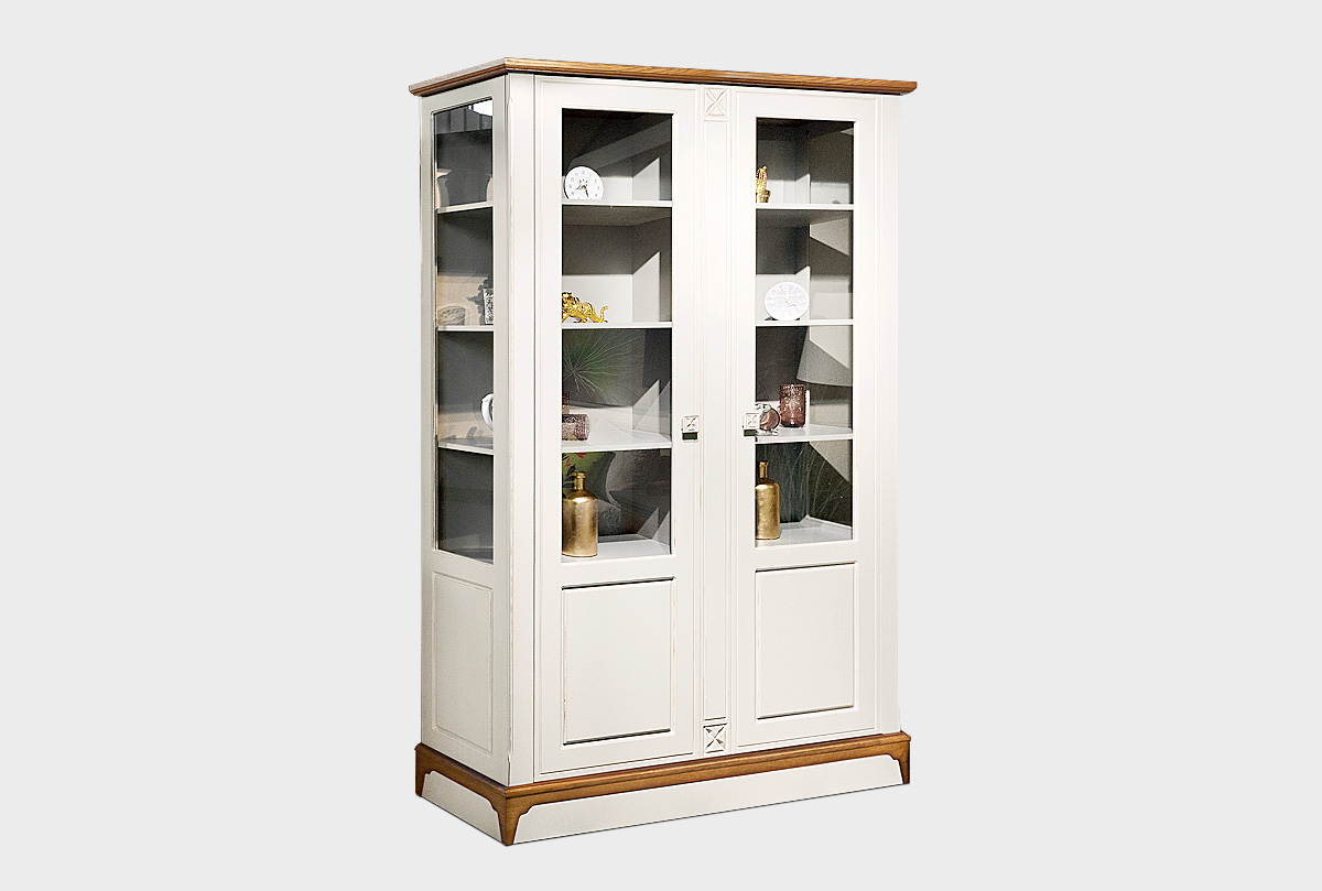 Двухдверная витрина «Brianson» в цвете "жемчуг+дуб" станет идеальным дополнением к гостиной. Несмотря на кажущуюся массивность, благодаря своей небольшой ширине этот шкаф «Бриансон» не займет много места в Вашей комнате и станет ее украшением и изюминкой.