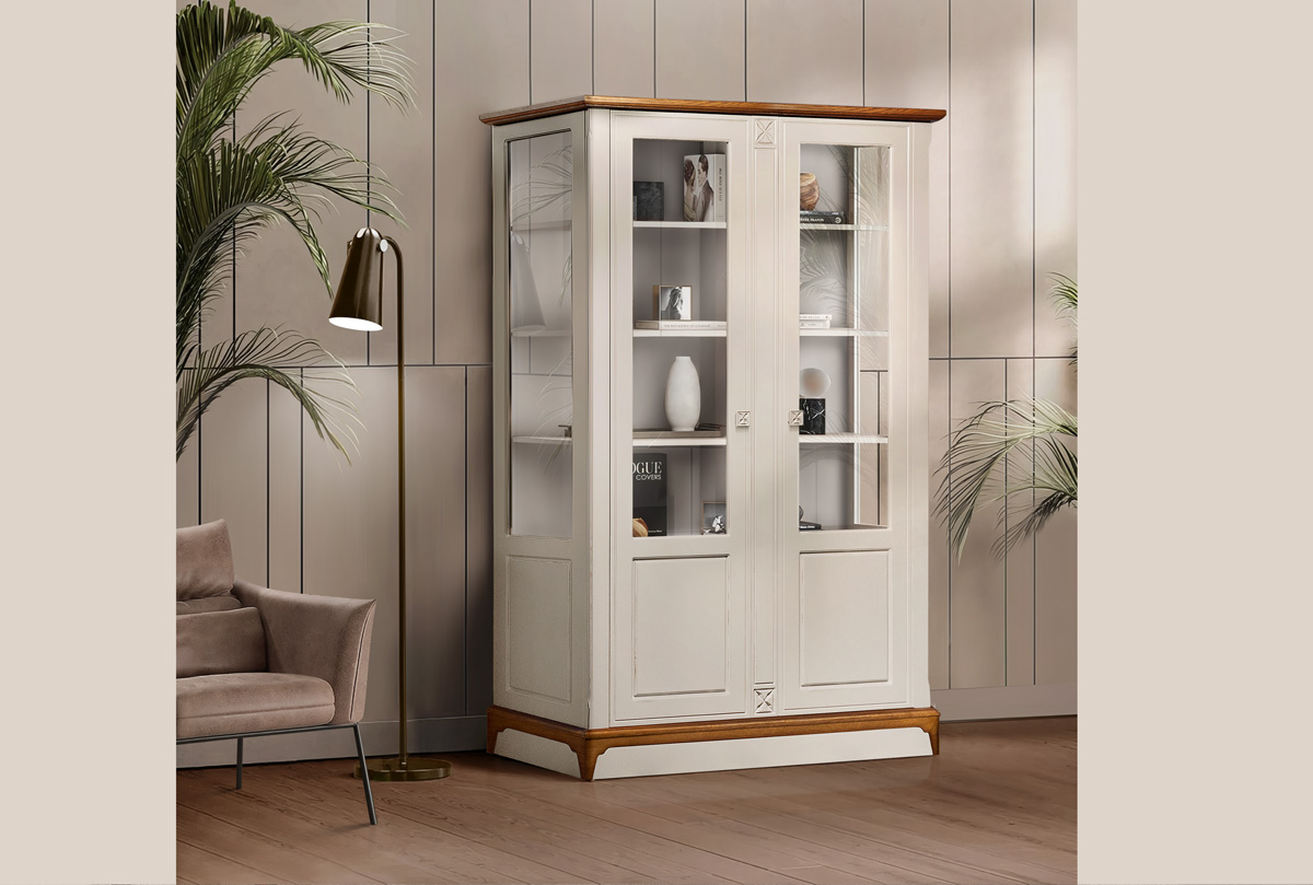 Шкаф с витриной 2-х дверный "Brianson", жемчуг + дуб, (.Г000072368)