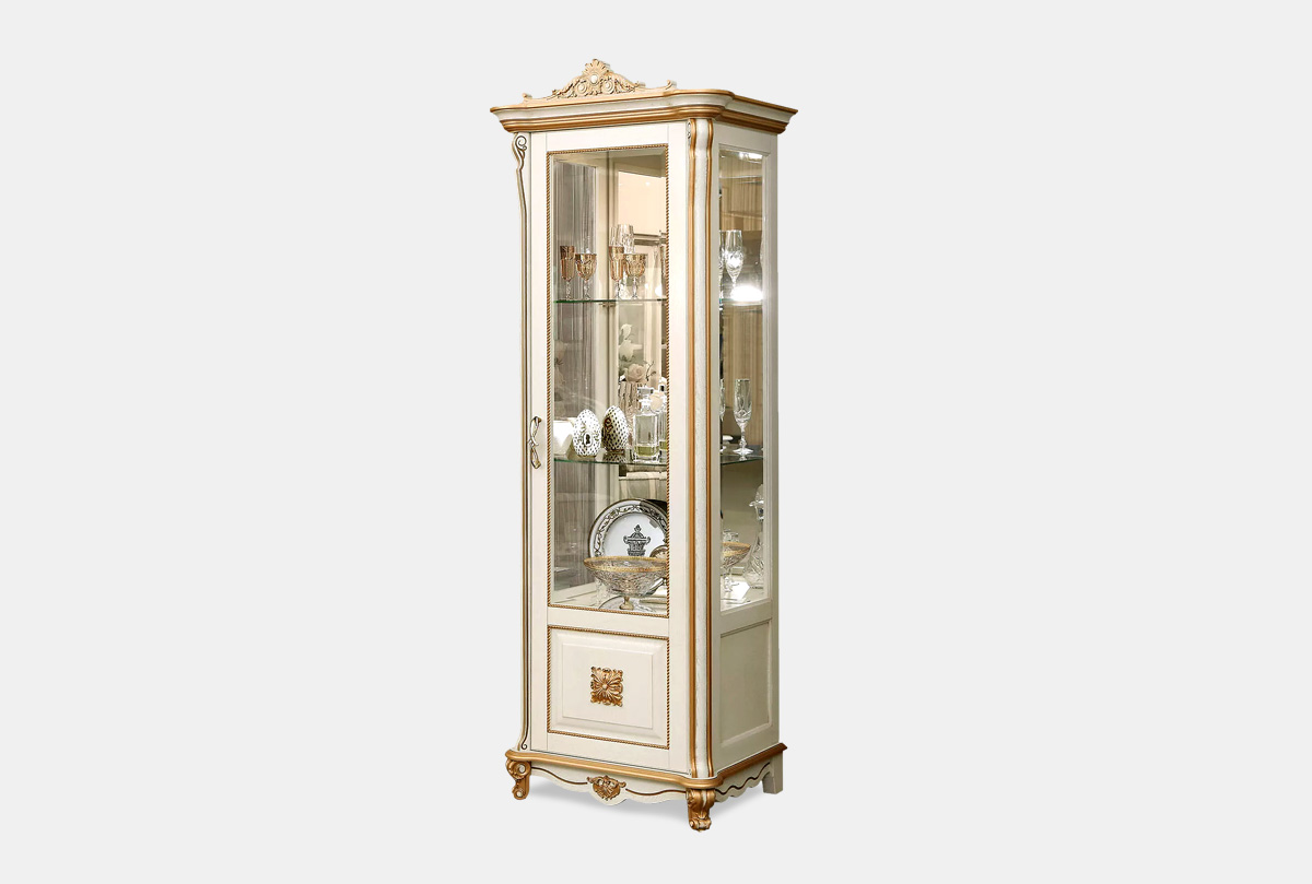 Шкаф с витриной "Алези 8 Люкс" (правый), слоновая кость с золочением, (.Г000018884)