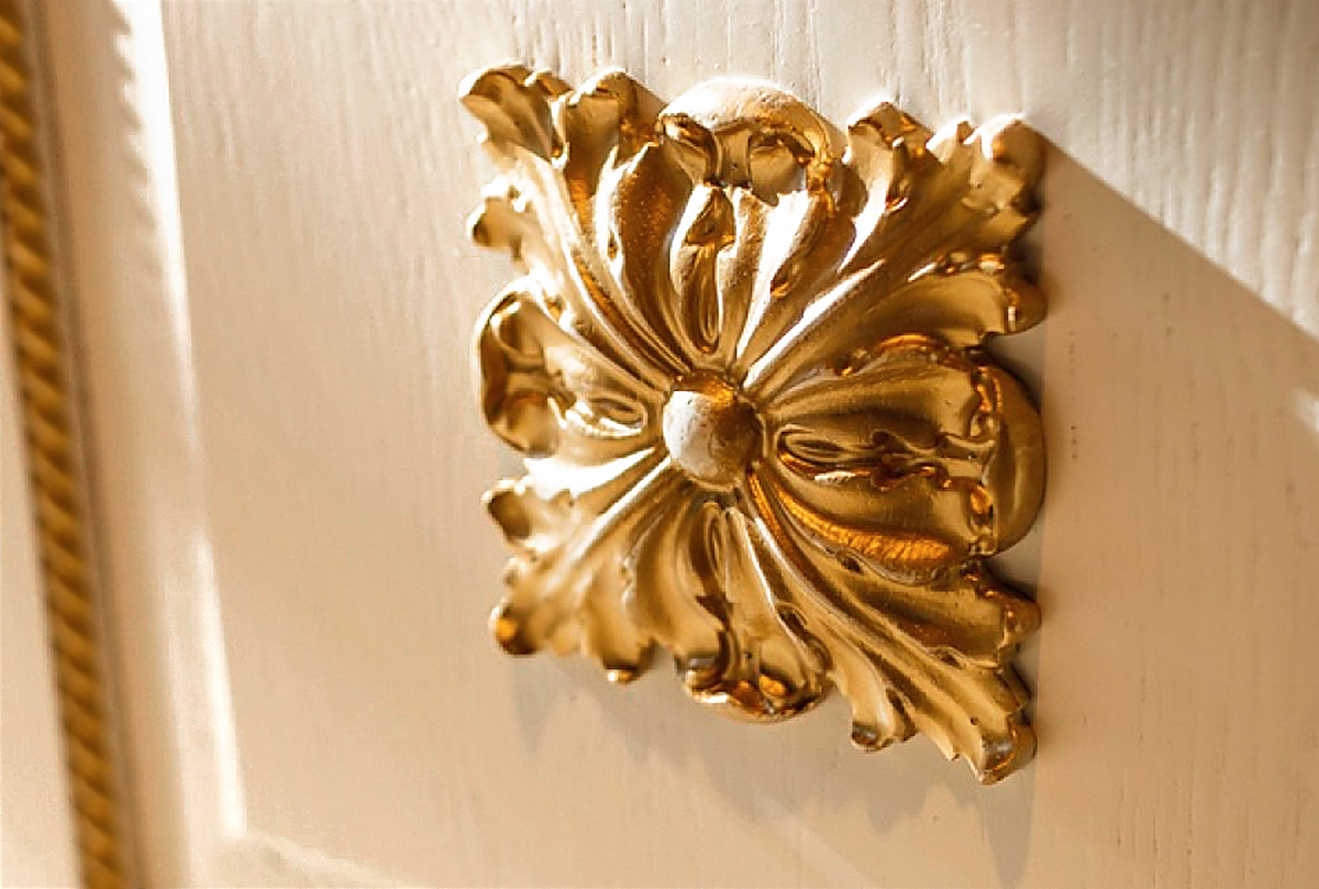 ✅ Витиеватые декоративные элементы, выполненные в золоте или бронзе, подчеркивают роскошь изделия и элегантность итальянского стиля.