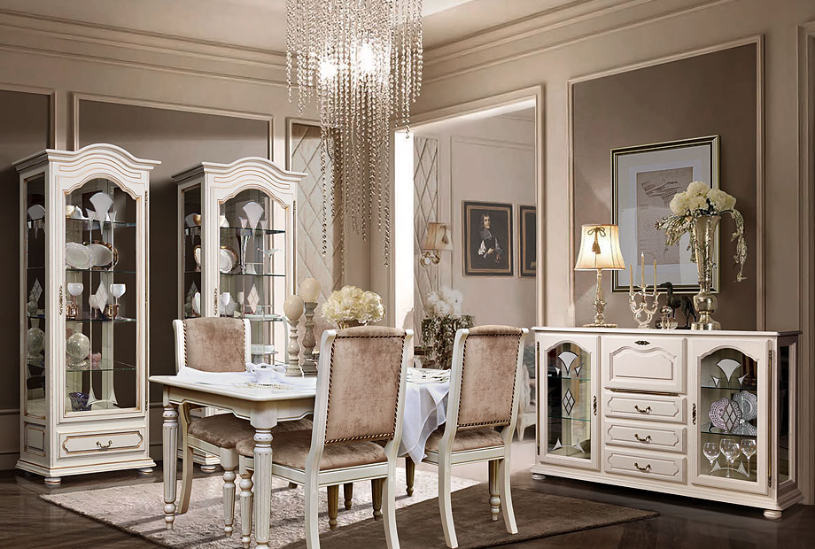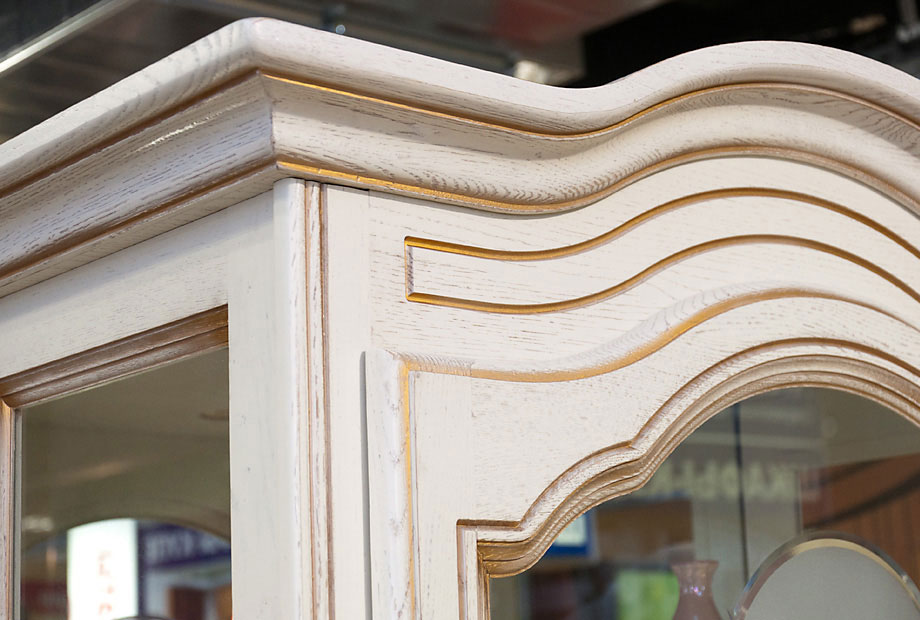 Грациозный шкаф с витриной из массива дуба, покрытый на выбор просто белой эмалью, белой эмалью с золотой патиной или имеющий натуральный медовый оттенок, придаст гостиной удивительный шарм. Гнутый карниз и декоративные пилястры, исполненные в извечном классическом стиле, априори подразумевают стиль и элегантность. В шкафу спокойно могут разместиться дорогие сердцу вещицы, коллекции и книги. Поэтому и прозрачные полки, и дверцы шкафа, выполненные из декоративного стекла и, в целом, неповторимый облик изделия, станут источником неподдельной радости счастливых обладателей шкафа-витрины «Давиль» 54.