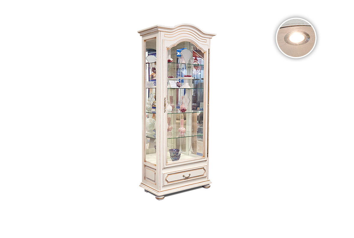 Шкаф с витриной "Давиль" 54, белая эмаль с золотой патиной, стекло декоративное, (Г9614)