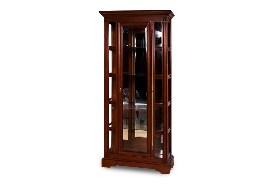 Шкаф с витриной "Полонез" отвечает главным требованиям выбранного стиля: он выполнен из массива и шпона бука и очень элегантно смотрится в цвете "черешня". За счет выразительного сочетания большого количества стекла и зеркал шкаф кажется легким и невесомым. На стеклянных полках в обрамлении темно-красного дерева эффектно будет смотреться посуда и иные столовые приборы. Шкаф с витриной "Полонез" 01 можно выбрать с учетом того, куда открывается его дверь (вправо или влево), чтобы эксплуатация изделия была максимально комфортной.