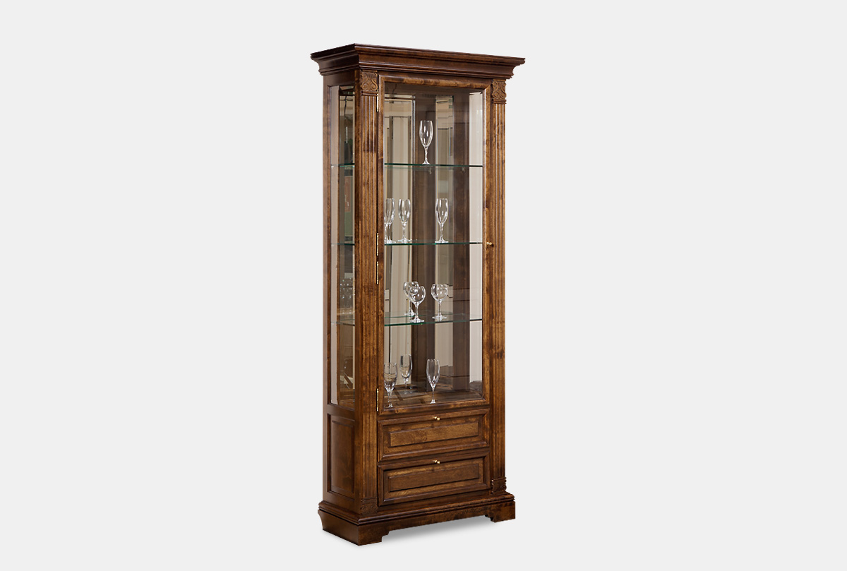 Красивая посуда способна украсить любой интерьер и придать ему особое очарование. Если Вы задумались о достойном фоне для ваших сокровищ, то аккуратный шкаф для посуды "Престиж" 6 станет полноценным предметом интерьера для хранения любимых сервизов. В основе такой мебели использованы натуральные материалы (массив и шпон берёзы) и классические дизайнерские приемы. Благодаря зеркалу и боковым стенкам из стекла такой шкаф не выглядит громоздким. Модель имеет удобные ящики, которые прекрасно подойдут для хранения столовых приборов.