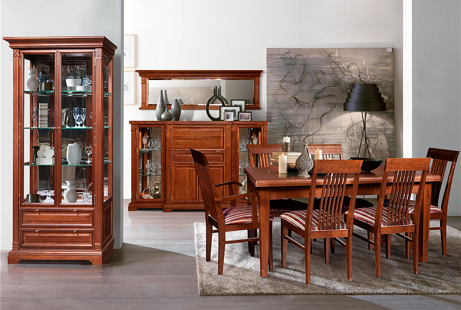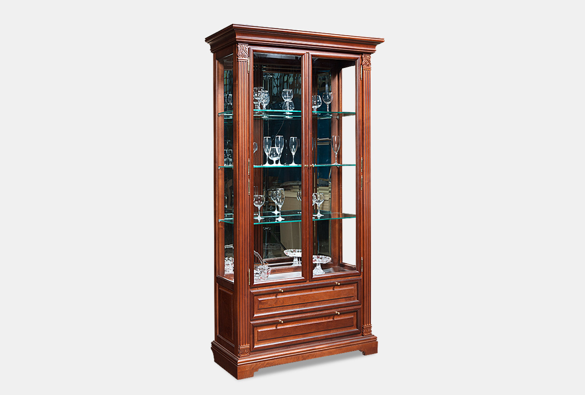 В практичном шкафу для посуды "Престиж" 7 Вы можете хранить изделия из стекла, хрусталя или фарфора. Благодаря натуральному дереву, а именно массиву берёзы, шкаф смотрится изысканно и стильно, а классический стиль, в котором он выполнен, создает не только гармоничную атмосферу в помещении, но и является признаком прекрасного вкуса. Обилие легких стеклянных элементов - полок, фацетных стекол и зеркал - избавляет от чувства громоздкости. Никогда не устареют и классические цветовые оттенки витрины