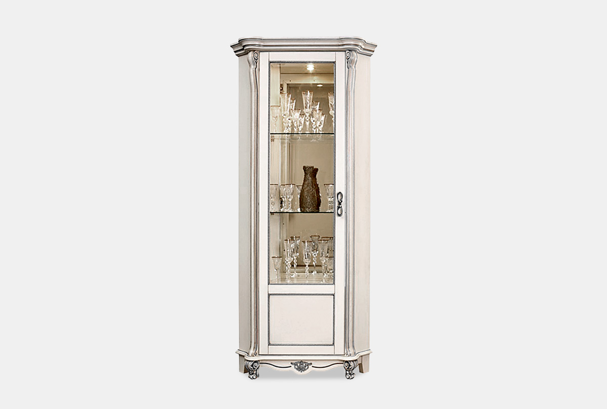 Шкаф с витриной угловой "Алези 10" (левый), слоновая кость с серебром, (.Г000056687)