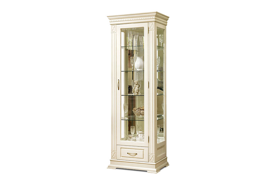 Шкаф с витриной "Верди Люкс 1з", слоновая кость с золочением, (.Г000068078)