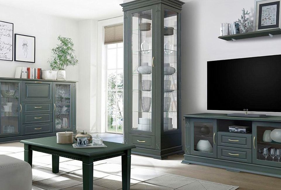 Шкаф с витриной "Верди Люкс 1з", грин, (.Г000081425)