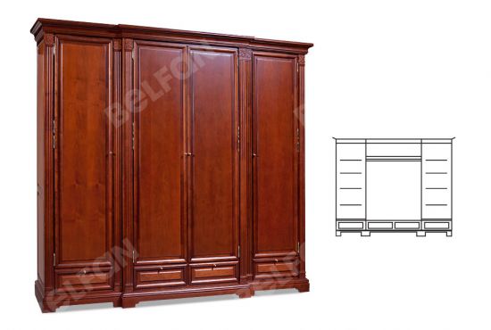 Шкаф для платья и белья "Престиж" 24 - абсолютная мебельная классика. Его главное достоинство — практичность: наравне с распашными дверями шкаф может похвастаться и выдвижными ящиками в нижней своей части. Декоративная резьба украшает боковые лицевые пилястры, превращая шкаф в настоящее произведение мебельного искусства. Фасад шкафа демонстрирует свою натуральную красоту, отражающуюся в четкой текстуре берёзы. Особый шик шкафу придает тонировка в цвете "мокко".