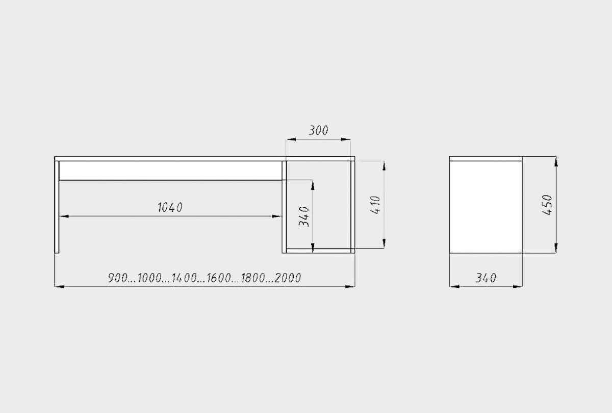 Скамья-приставка к кровати «Берген» в цвете «графит» из дуба. Ширина 100 см.