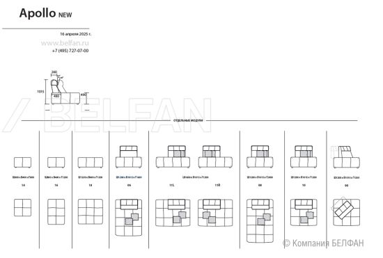 Современные диваны "Apollo New" диван П-образный, ткань на выбор, (.Г000091121)