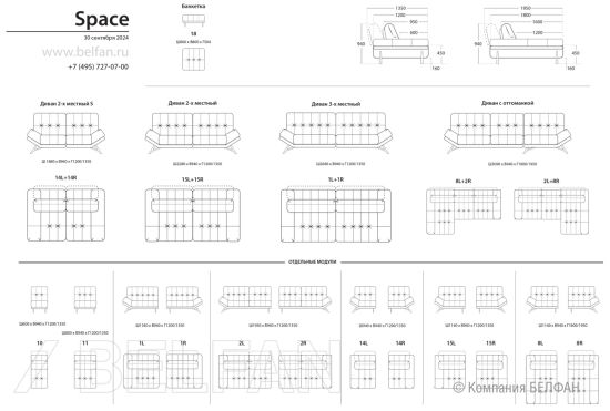"Space" диван 3-х местный XL, ткань на выбор, (.Г000085961)