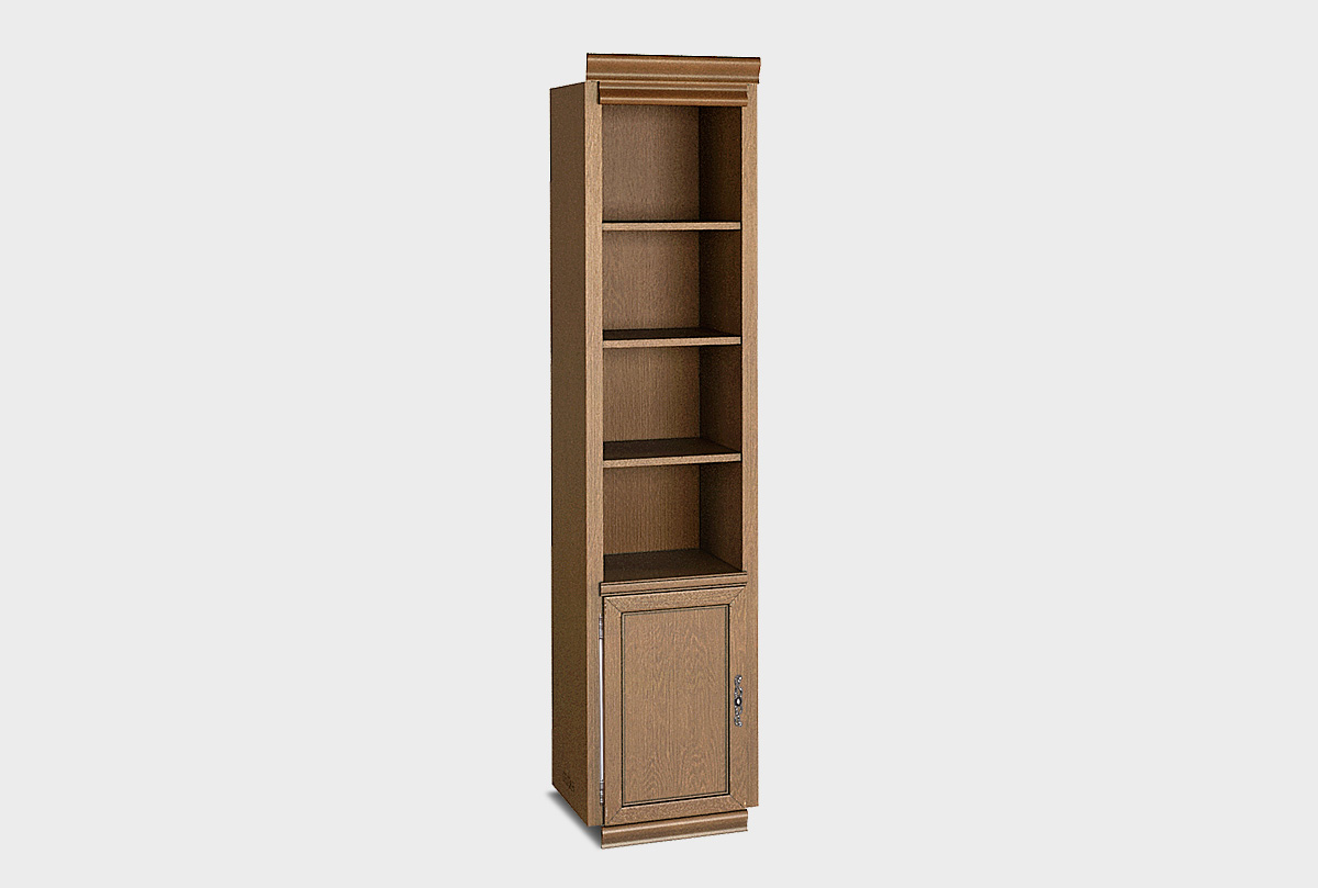 Однодверный левый стеллаж Оскар» (Oskar) из дуба станет прекрасным дополнением как к кабинету в классическом стиле, так и к гостиной или спальне.