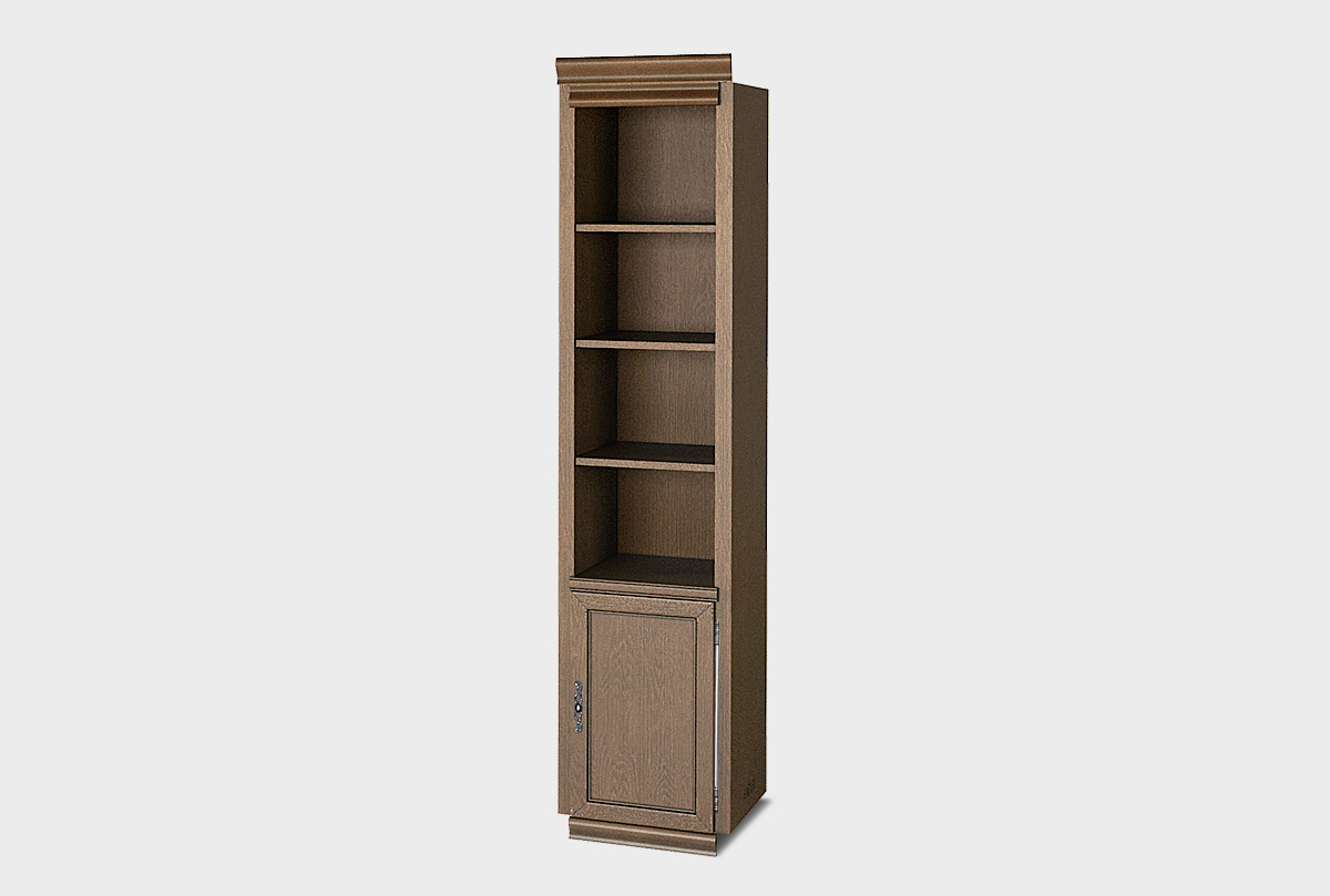 Однодверный правый стеллаж «Оскар» (Oskar) из дуба станет прекрасным дополнением как к кабинету в классическом стиле, так и к гостиной или спальне.