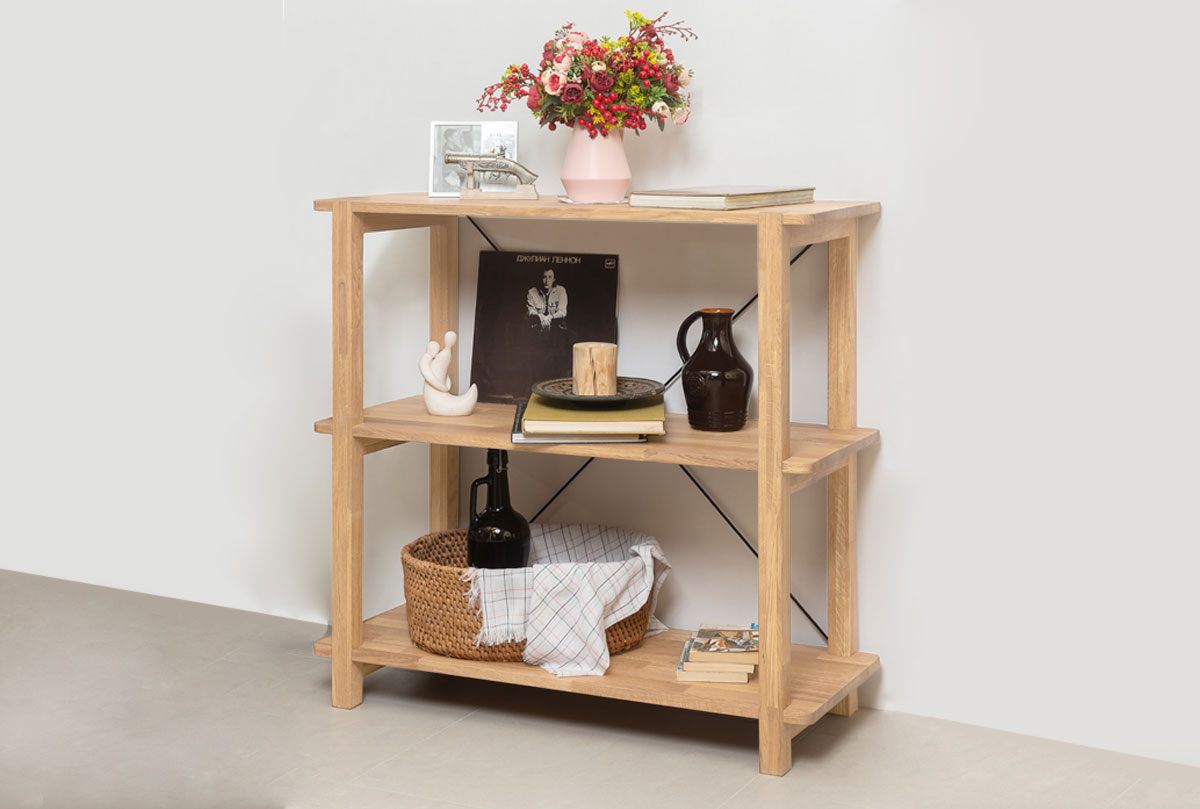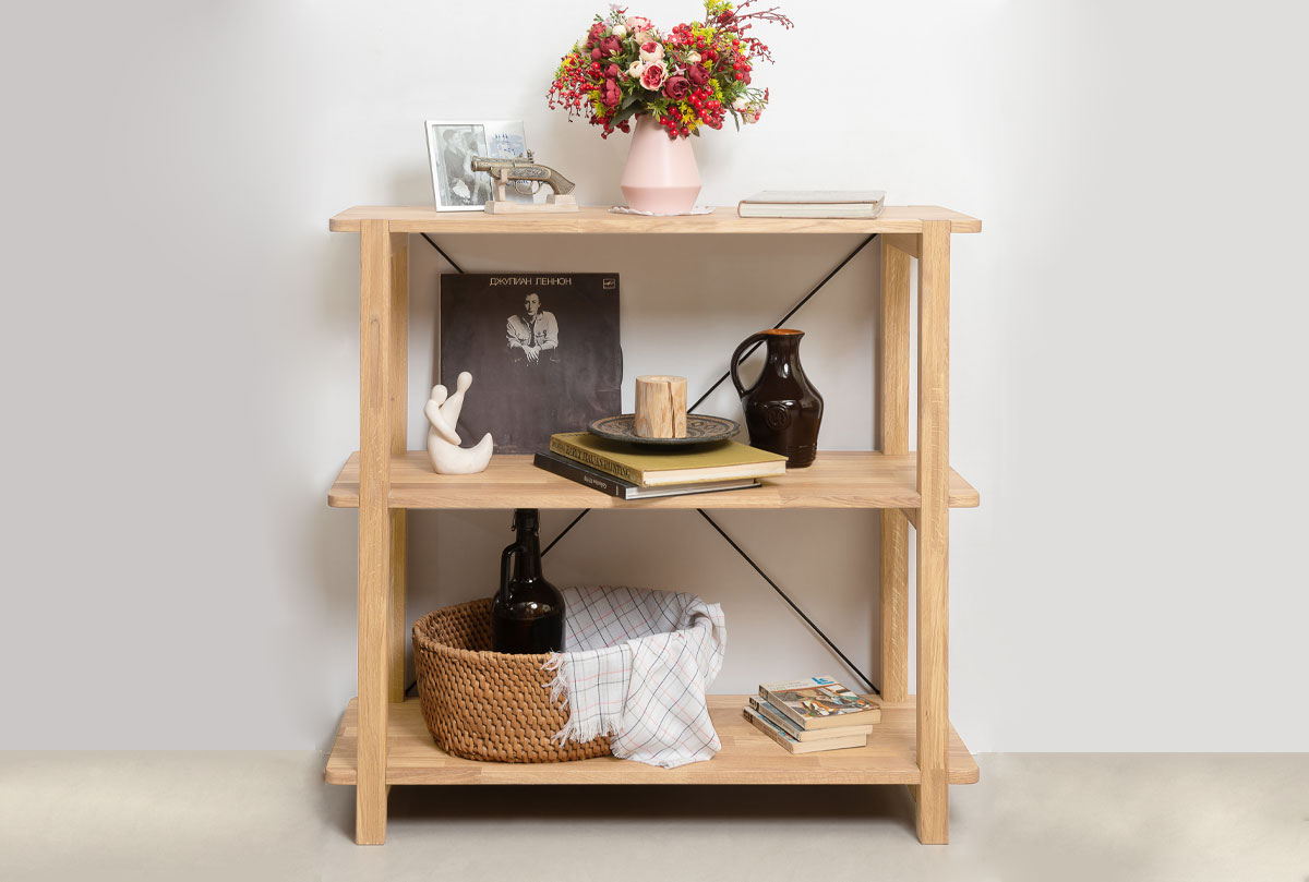 Небольшой двухсекционный стеллаж Art Collection («Art Collection») в цвете «белёный дуб» из массива дуба в стиле Лофт.