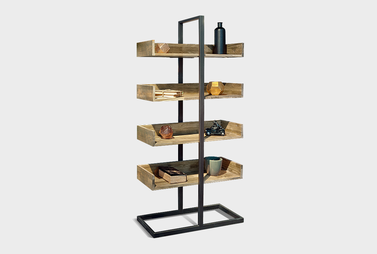 Стеллаж Art Collection («Арт Коллекшен») 4-1 в цвете «серый дуб, чёрный металл» в стиле Лофт с четырмя полками. Изготовлен из массива дуба на металлическом каркасе. Изделие идеально подойдет в качестве дополнения к кухонной мебели, стеллажа или этажерки. Возможно использовать как полку для декоративных предметов или стеллаж для книг. Вполне заменит небольшой книжный шкаф.