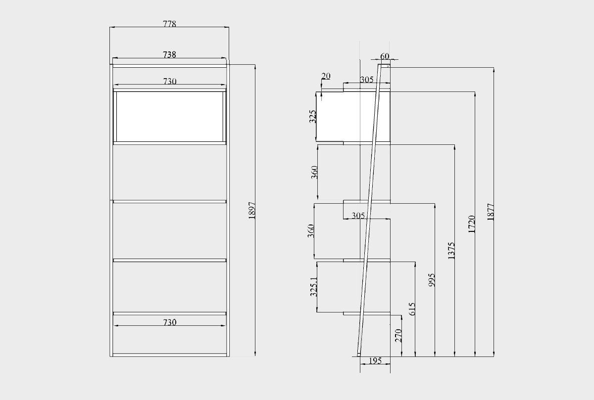 Стеллаж "Art Collection" 445, бейц-масло + черный металл, пристенный наклонный, (.Г000043047)