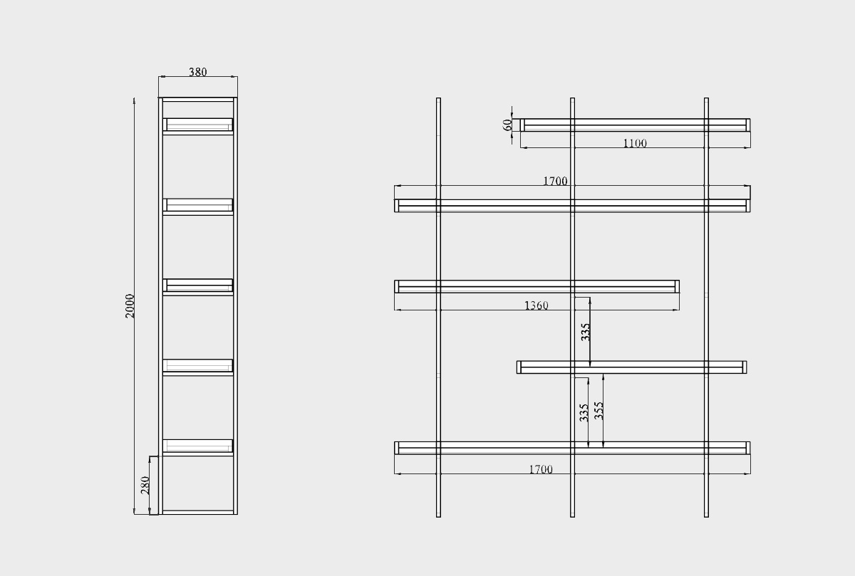 Стеллаж "Art Collection" 453, белёный дуб + черный металл, пристенный, (.Г000046945)
