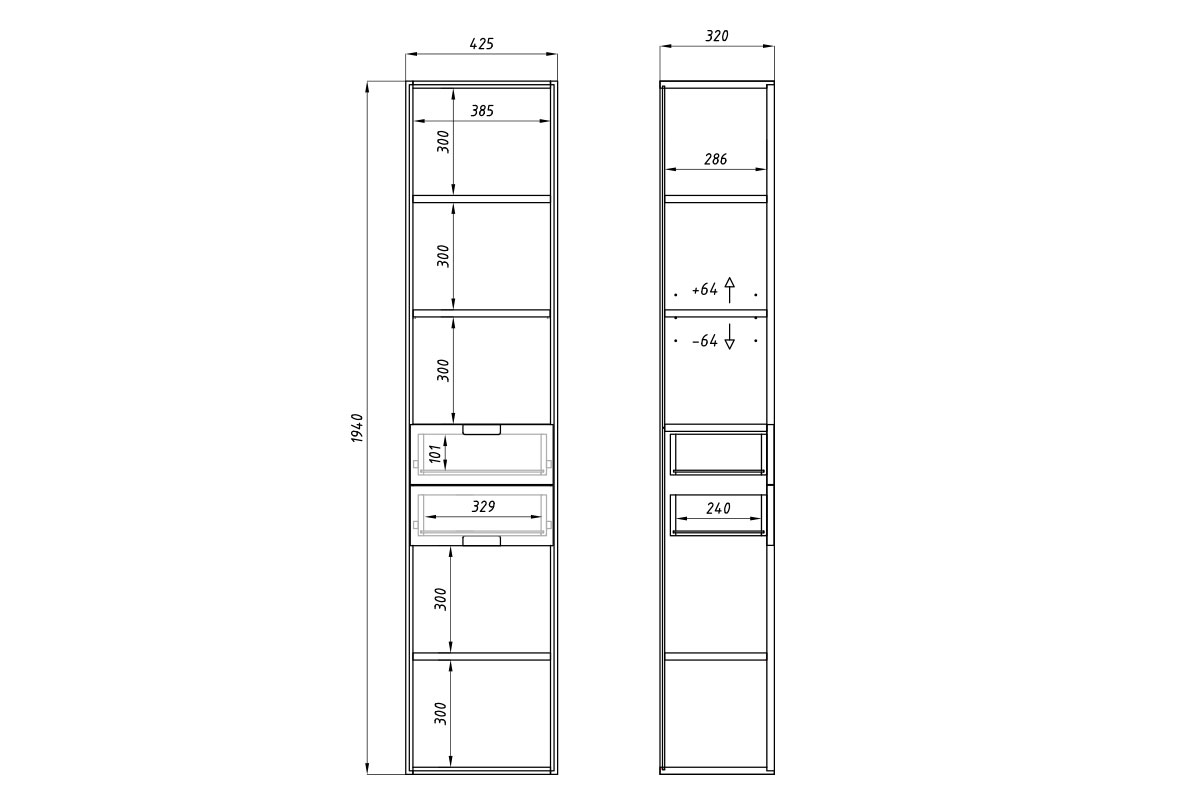 Схема стеллажа Irving Design 6 (с ящиками):